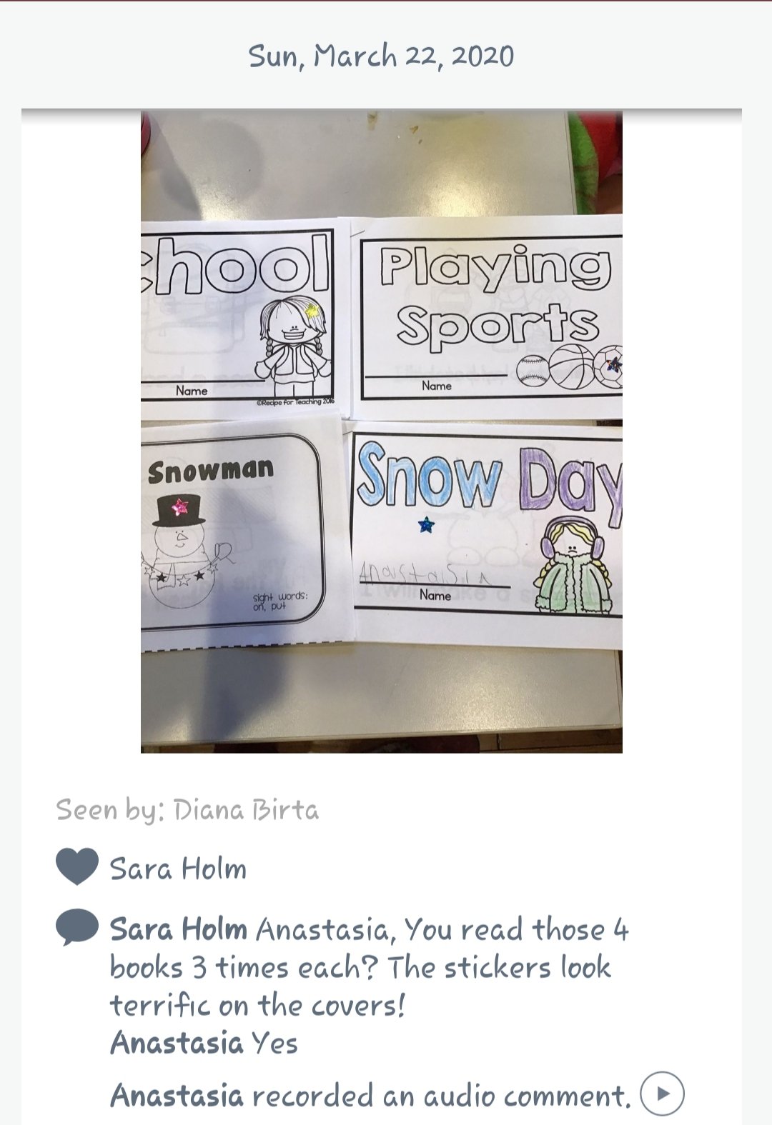 Distance Kindergarten has many down sides but I’m really grateful that I can give feedback and show my love for my kids and their families with Seesaw!